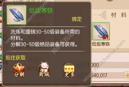 低级寒铁是洗炼化和重铸30~50级装备所需的材料;