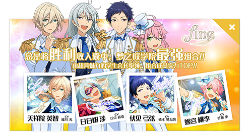 由魅力超群的学生会长率领的学院最强组合,fine成员:天翔园英智,日日树涉,伏见弓弦,姬宫桃李