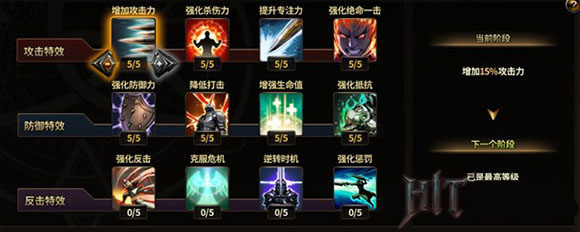 最后看看被动技能,四个职业的被动技能都是一样的,分为攻击特效、防御特效和反击特效三大类。