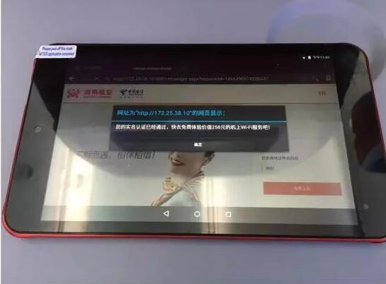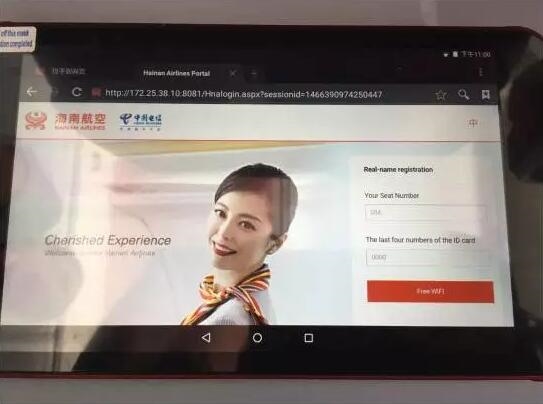 2、待飞行平稳后听到广播后,你就可以打开设备,连接海航的网络了,在网页上会弹出一个实名认证的框,输入验证信息后即可连接到网络。