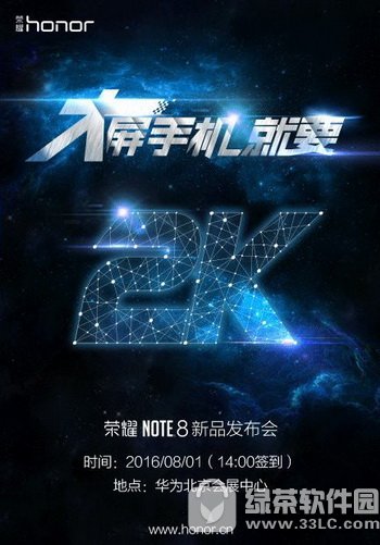 华为荣耀手机官微公布了荣耀note8的发布会时间和地点:8月1日,华为北京会展中心。发布会的具体时间为8月1日下午15:00。