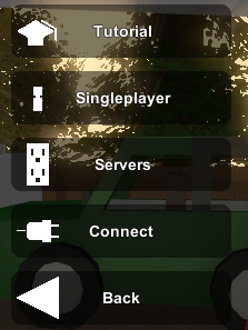 四项选择分别是教程、单人模式、服务器列表、直连IP。