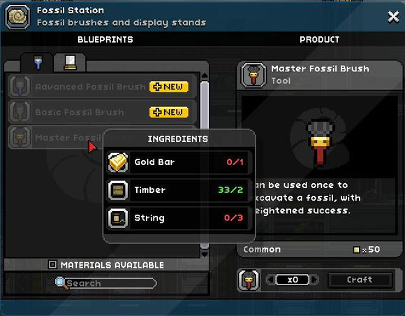 机器可以用来制作考古用三种刷子,金色的最高级,木头的最低级,最好做金色的,有四种工具敲石头,更容易考古成功