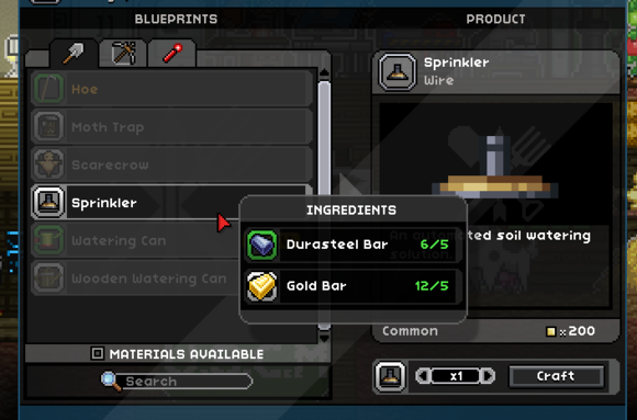 也可以说是农业的最后一步了,想必发展到现在你已经上可日古龙,下可轮企鹅了,这种时候你肯定厌烦了浇水这个步骤,那么你肯定需要全自助灌溉了,只要舍弃一个种子的位置就可以让周围十个内的作物全天享受灌溉,制作与农业站